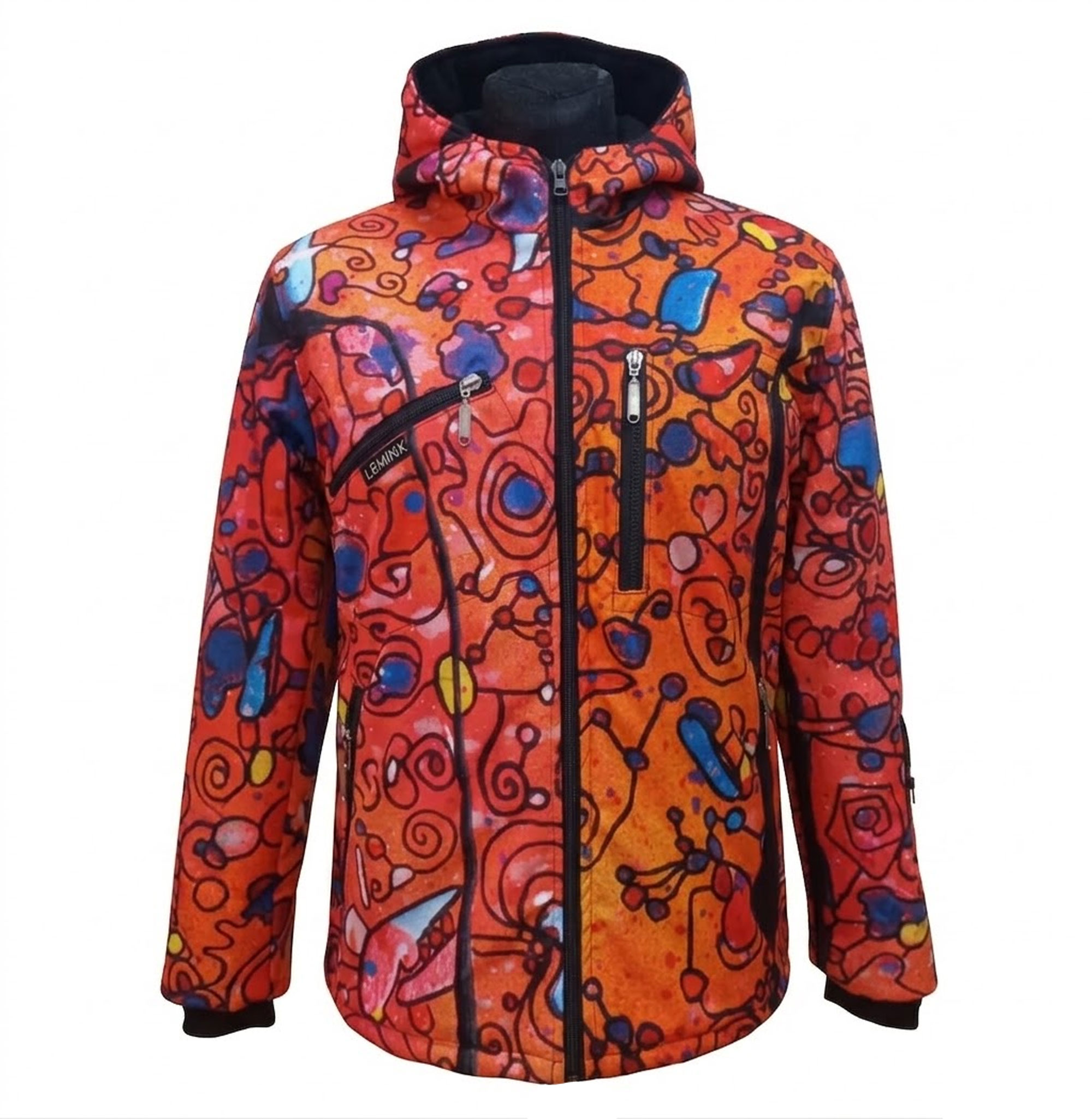 The LEMINX ART SOFTSHELL jacket is a captivating blend of art and functionality. Designed by Slovakian artist Michael LEMINX, this softshell jacket seamlessly marries psychedelic aesthetics with practical features.